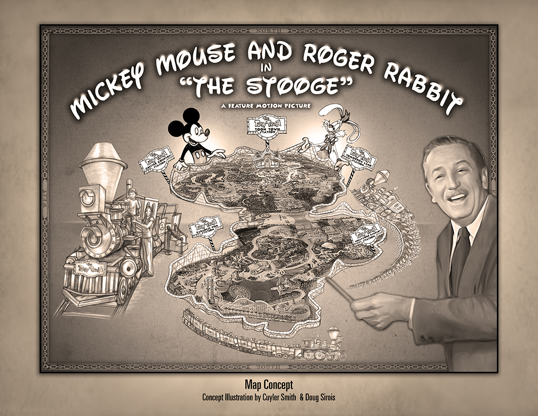 The Stooge is more of G-rated animated movie with the sensibility of a Wall-E or Toy Story. There will be no question that this will be a family oriented movie…realistically there is only one place that can make this movie. There is only [one] place where Mickey Mouse and Roger Rabbit exist and that is Disney. If Disney isn’t interested, then that is it!…the good part of it is that we have structured the whole proposal so that it is Disney-centric and there are a lot of spin-offs to this proposal that would make sense to Disney. The whole movie, The Stooge is going to be set in Disney theme park lands…they take a train from land to land with their traveling vaudeville show. You are not only merchandising Roger and Mickey, but you are merchandising the Disney lands!