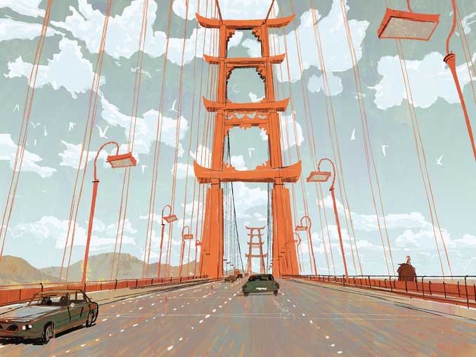 Concept Art of An Iconic Bridge and Landmark of San Fransokyo