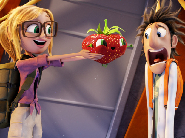 Cloudy with A Chance of Meatballs 2 continues the story of Flint, the eccentric genius scientist. The story picks up right where the first film left off, but it turns out that not all is well: the FLDSMDFR (a machine that turned water into food) didn’t get fully destroyed, but actually landed back on his home town of Shadow Falls. He and his friends are forced to evacuate the town so that the world famous scientist, Chester V, can clean up the mess the FLDSMDFR food storm caused. Chester V offers Flint a job at his company The Live Corp Company and sends him back to Shadow Falls to help with the storm clean up. Once he and his friends get there, he realizes that things have gotten way out of control and that the town has now been inhabited by food animals.