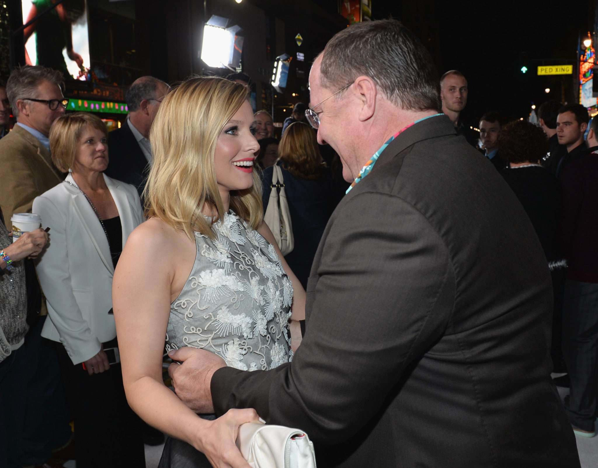 After that, everyone was whisked away to take a cast and crew photo in front of the big snow mound. It seemed like that was the end of the interviews since the screening would be starting shortly thereafter. But the incredible Kristen Bell ended up saying on the white carpet even after the screening started, so that everyone could get a chance to interview her. Are you kidding me? What a sweetheart. Chelsea got to ask Kristen a few questions and she was just as adorable, beautiful and sweet as you’d imagine her to be.
