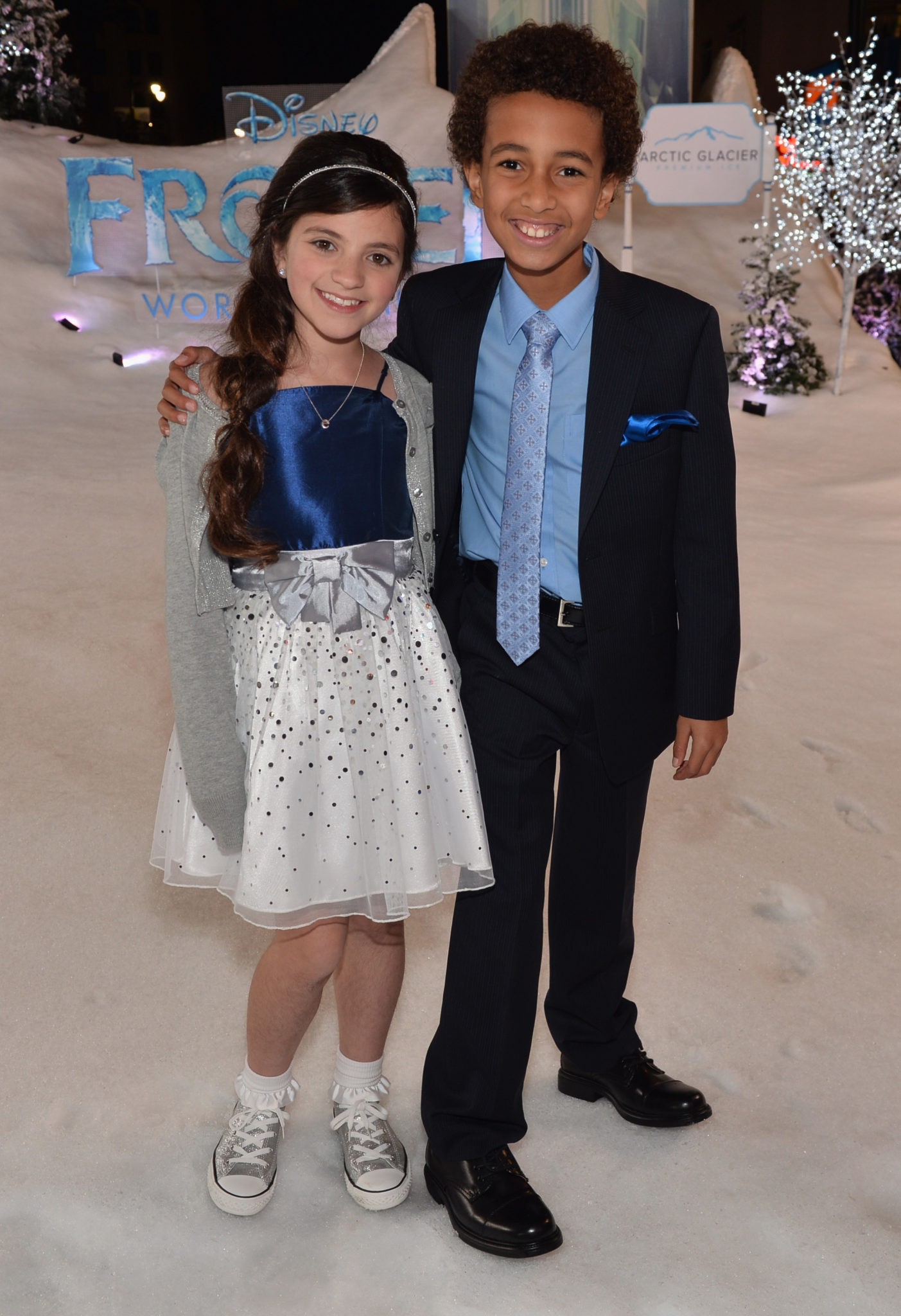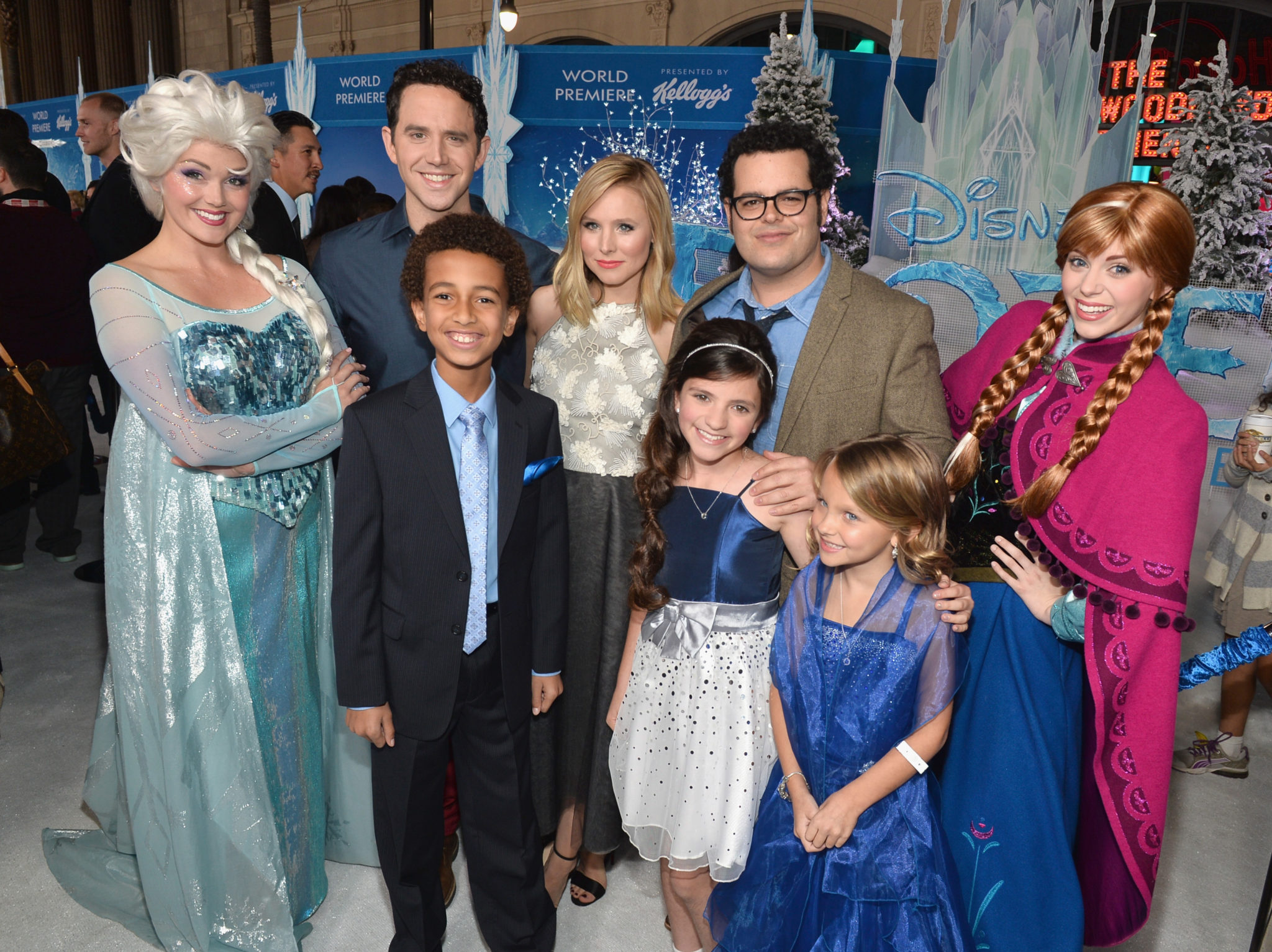 The young voice actors (bottom row): Eva Bella (voice of young Elsa), Livvy Stubenrauch (voice of young Anna) & Tyree Brown (voice of young Kristoff)