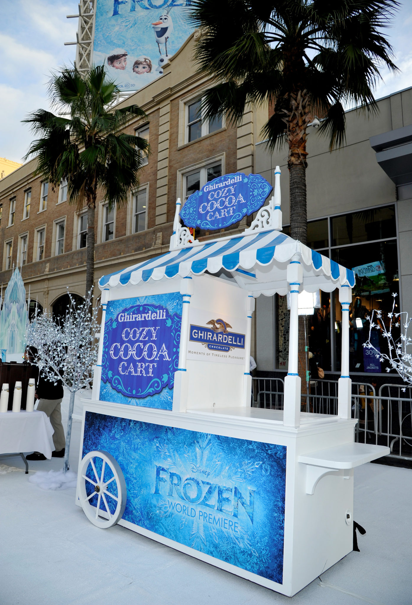 Since Elsa’s snow made it so chilly, guests walking the white carpet were treated to Ghirardelli hot chocolate. And boy, oh boy, that was some of the richest, most delicious hot chocolate we’ve ever tasted.
