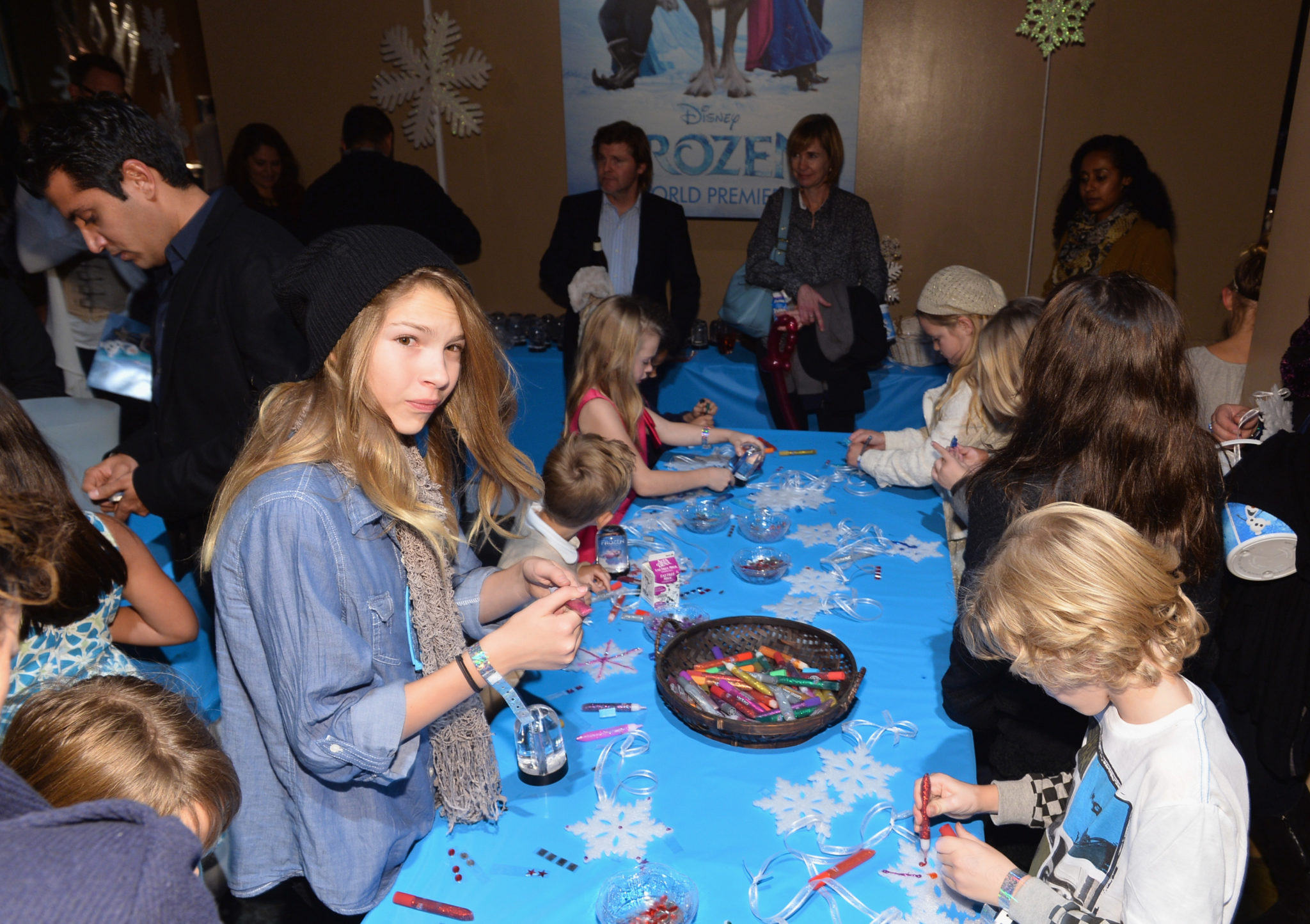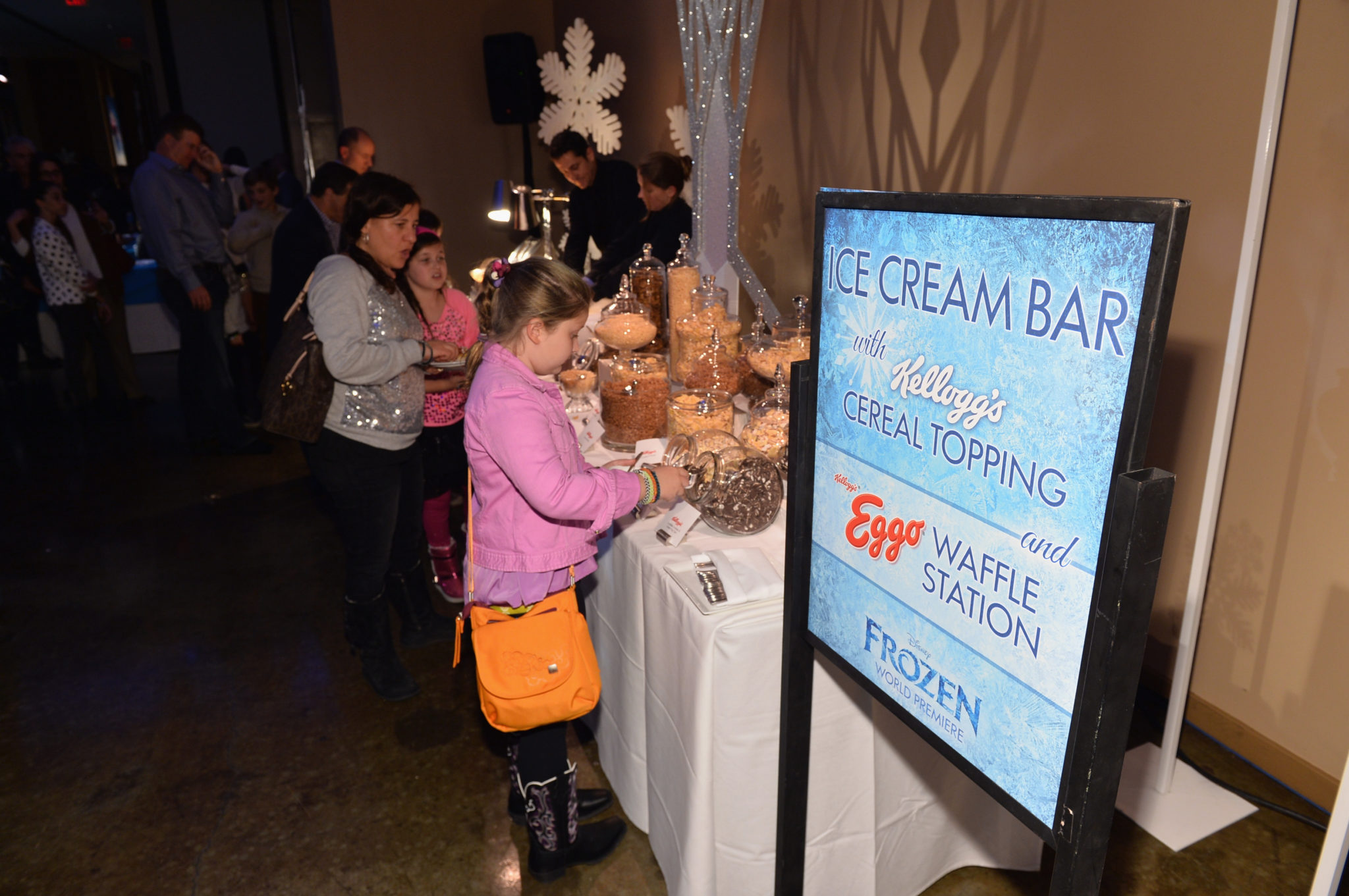 We didn’t get to attend the screening of after party, but heard that they both were a blast. Before the screening of the film, Disney’s CEO Bob Iger got up and gave a tribute to Diane Disney Miller, Walt Disney’s daughter, who had died earlier that day. After the screening, there were more festivities, including more chainsaw-weilding ice carvers and an ice-cream bar decked out with all the Kellogg’s toppings you could imagine. There also were some fun games and snowflake decorating for the kids to enjoy, while the adults socialized and sipped on champagne.
