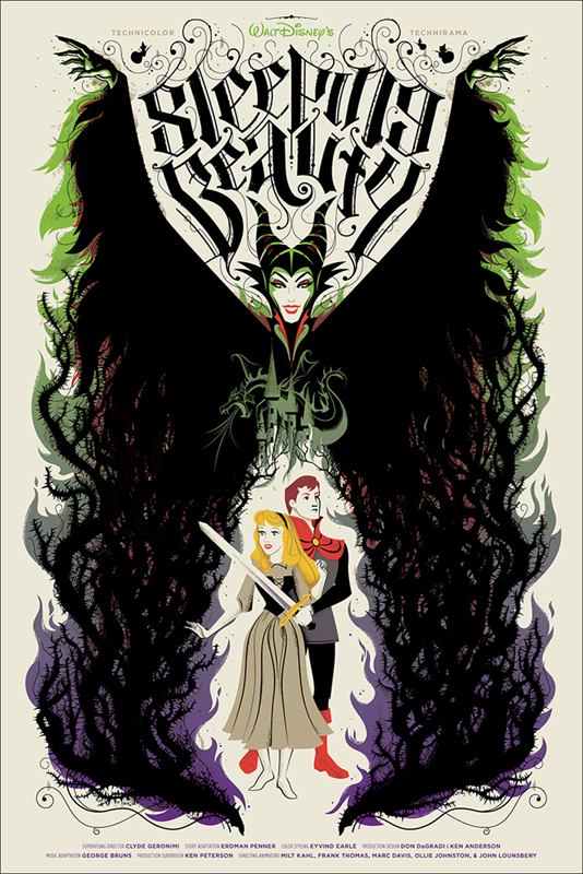 Some of the artists Mondo and Oh My Disney have been working with are: Dave Perillo (Winnie The Pooh), Jeff Soto (Fantasia), Billy Baumann (Sleeping Beauty), Kilian Eng (Black Hole), Jay Shaw (The Cat From Outer Space), Kevin Tong (WALL-E, Up), David Peterson (The Rescuers), Tom Whalen (The Incredibles, Aladdin), Ken Taylor (Alice in Wonderland).