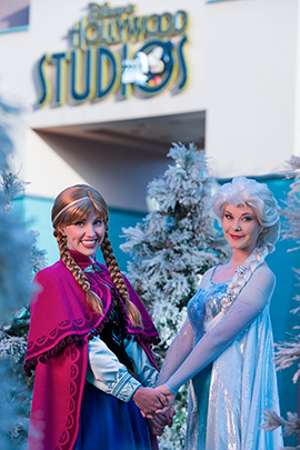 •  Anna and Elsa’s Royal Welcome – At 11:00 a.m. each day, Elsa and Anna arrive in Hollywood as part of their goodwill tour of neighboring kingdoms, making their way down Hollywood Boulevard in a horse-drawn sleigh. Kristoff is along for the fun, too, joined by a flurry of skaters, skiiers, ice cutters and more! The entire procession culminates in a special moment at the Sorcerer’s Hat Icon Stage to officially welcome the visiting royalty to this kingdom of Hollywoodland.
