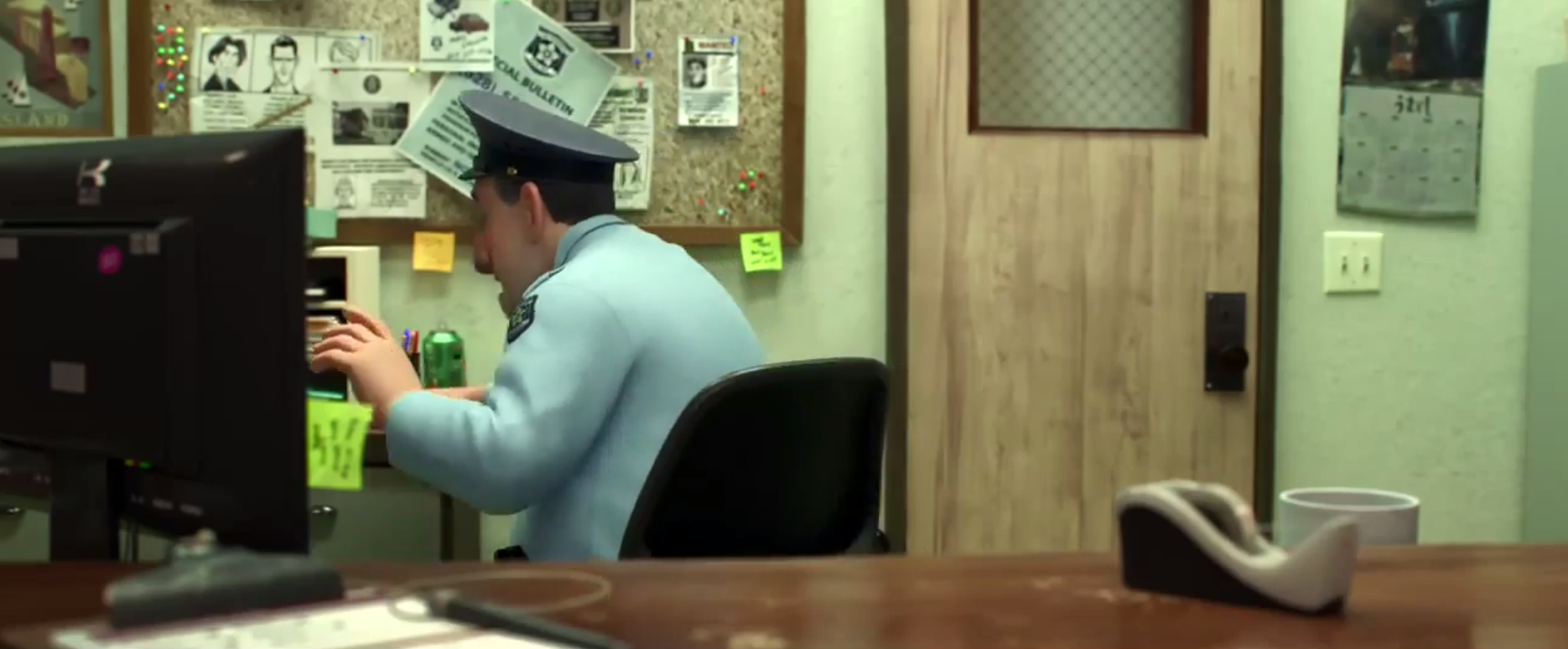 Some of our keen-eyed fans noticed a very familiar face in the trailer hidden in the police station. Any guesses who?