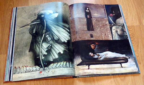 The overall design and format of the book is very artsy. Sometimes the artsy-ness gets in the way of getting a good view of Spalenka’s works, but I still see it as an overall strength. It has Titan Books’ trademark high quality and the paper is mostly a heavy semi-glossy photo paper. However, I wouldn’t gift this book to a youngster due to a fair amount of (partial) nudity.