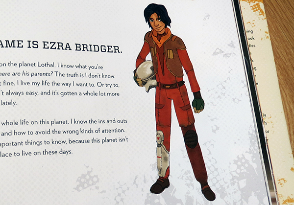 While it’s obviously not a comprehensive “Art of…” kind of book, there is plenty of art highlighting the Ezra, the crew of the Ghost, and the Imperial baddies. There is also some beautiful concept art featuring Lothal, the Outer Rim planet where Ezra lives. All of the pieces of concept art are cleverly disguised as book illustrations. There isn’t a lot of variation artist-wise and some of the designs are from early pre-production and don’t resemble the final product (not necessarily a bad thing). I’m still debating whether Lucasfilm was being smart or just lazy with this book.