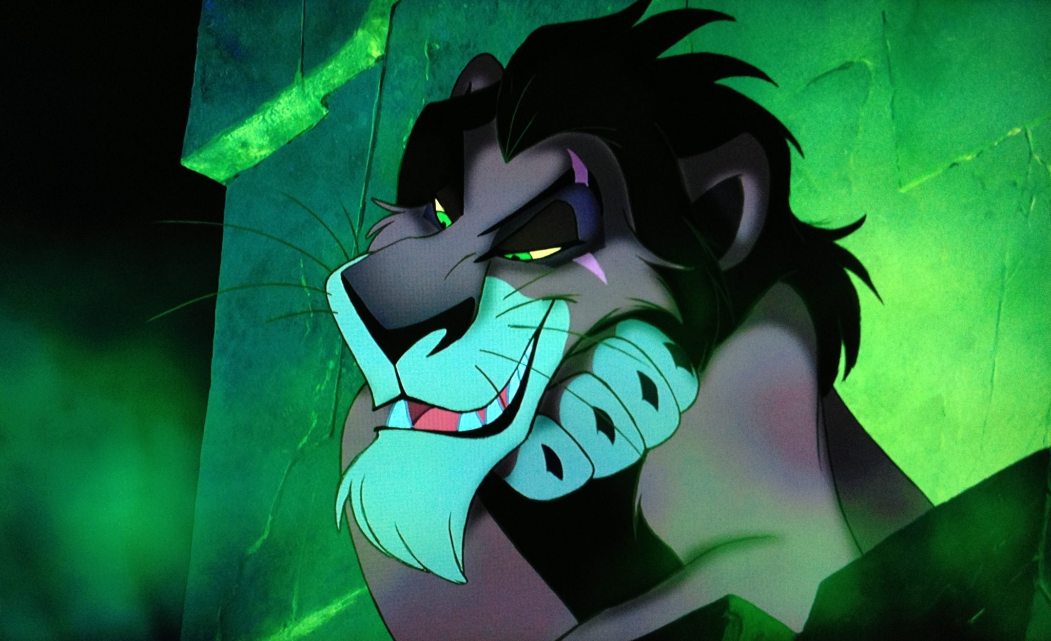 Something a good villain always has is the knowledge of how to exploit the hero’s weaknesses. Scar not only knows that Simba is terrified of being blamed for Mufasa’s death, he CAUSED that fear. It’s Scar who 1) Murders Mufasa, 2) Makes Simba feel responsible, 3) Tells him to go and never come back and 4) Tries to get him killed. So he’s not a good lion, generally speaking. But he is a fantastic antagonist. He basically creates Simba’s fear of responsibility and keeps exploiting it. For a lion that has been avoiding his past the whole movie, it must be really hard to face the one other soul who knows one’s deepest darkest secret. That’s the main reason Scar is such a fantastic villain.
