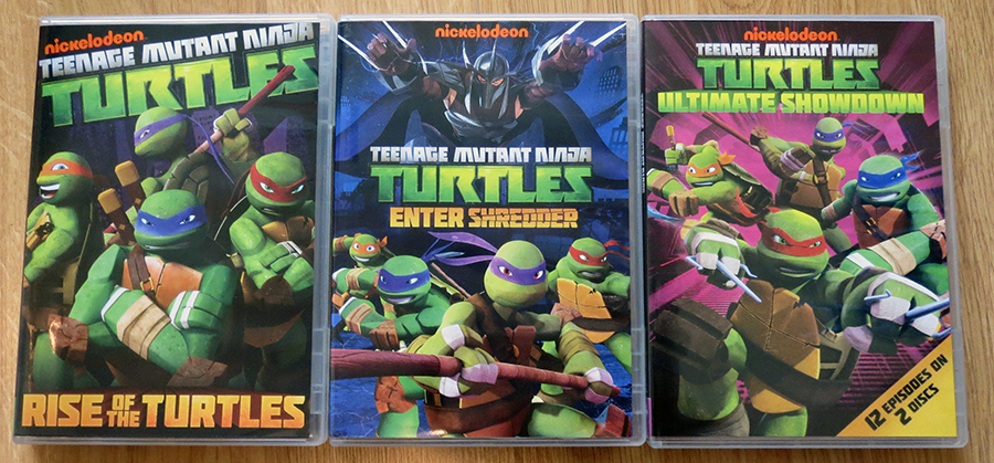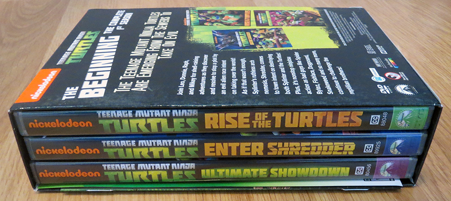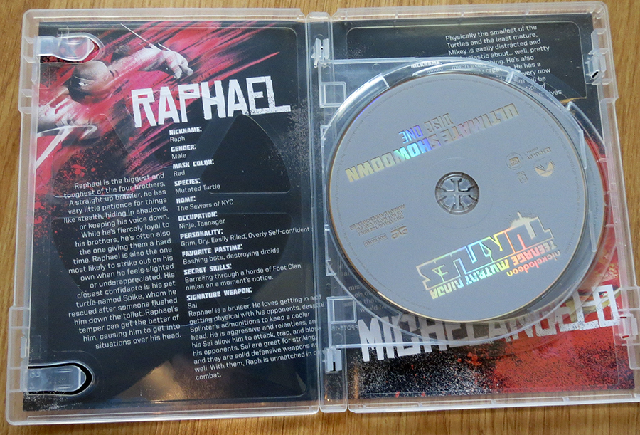 Within the box set you’ll find 3 DVD cases (the third one contains 2 discs). The packaging is excellent; open one of the cases and you’ll find a cool profile on one of the turtles with lots of fun information to read about. Each of the cases has its own title like “Rise of the Turtles”, and “Enter the Shredder”, which can get confusing when you’re trying to watch the episodes in order.