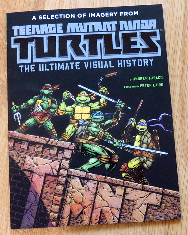 There’s also a cool little booklet, kind of a sample of artwork from the book Teenage Mutant Ninja Turtles: The Ultimate Visual History. It’s got some images from the original TMNT comics, as well as the original Saturday morning cartoon and its subsequent reboots through the years.