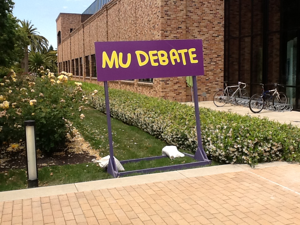 Beyond the fangirl thoughts drumming through my mind, my professional writer’s mentality kicked in and absorbed the other details. The week prior to my arrival, Pixar had hosted a large PR event for Monsters University. They had decked out the studio and campus as if it were a real college orientation day for the pretend scare school. There had been information booths, scare-leaders, and other activities. The remains still littered the area beneath Luxo’s unblinking gaze. Two things that I enjoyed the most were a replica of MU’s gate and a circular kiosk with fliers for campus happenings. I almost took a flier as a souvenir, but my morals got the better of me.