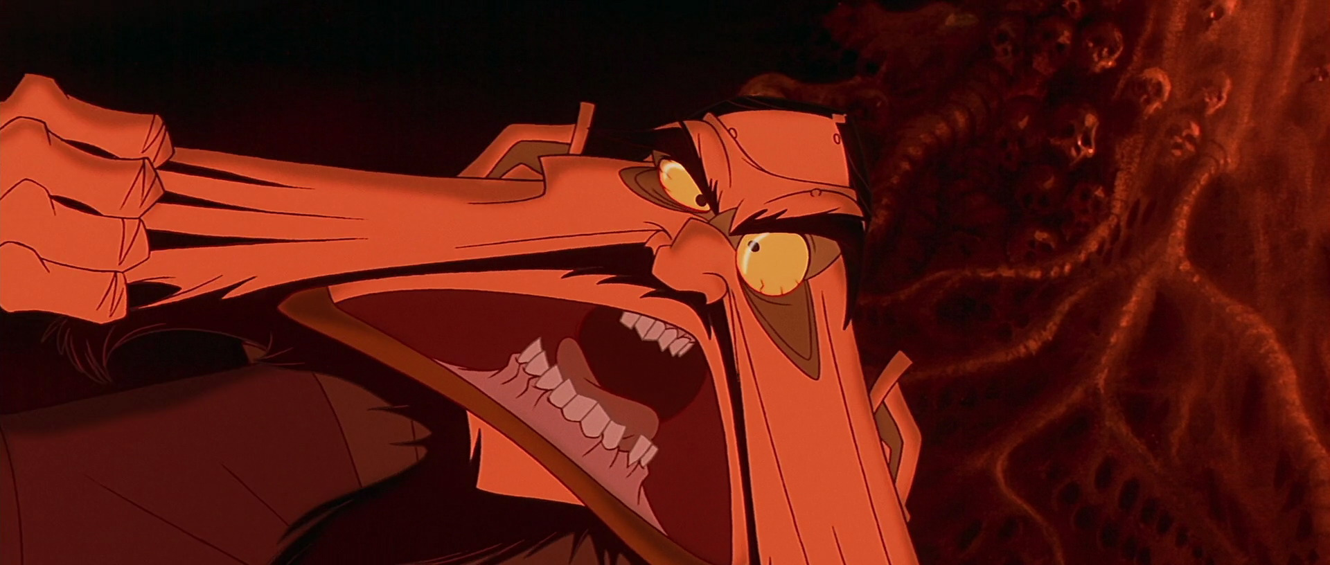 So what makes Rasputin one of the great Disney Villains? First of all, he has evil magical powers and evil magical minions that try to murder Anastasia for him. And a powerful villain is an important asset in a movie because they immediately raise the stakes. If the heroes never feel safe or the threat they’re facing is tough, the movie will always be better. Rasputin can be too much of a comic-relief character at some points, diminishing the threat he presents, but ultimately, he’s a powerful Russian sorcerer who swore to kill every single member of Anastasia’s family. And that’s not okay. Especially not in a Disney movie!