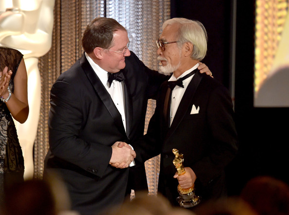 Hayao Miyazaki’s attendance marks the second time he has visited the United States, having passed up on attending the Oscars in 2003 when Spirited Away was nominated (and won) for Best Animated Film. It was not until many years later that he publicly stated that his absence was due to the U.S.’s involvement with the Iraq war, which contradicts his pacifist views. He did break his silent boycott of the U.S. in 2009 in order to attend San Diego Comic Con, again, at John Lasseter’s request.