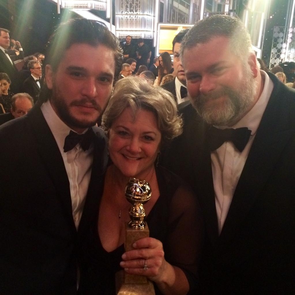 (From left to right: Kit Harrington, Bonnie Arnold, and Dean Deblois)