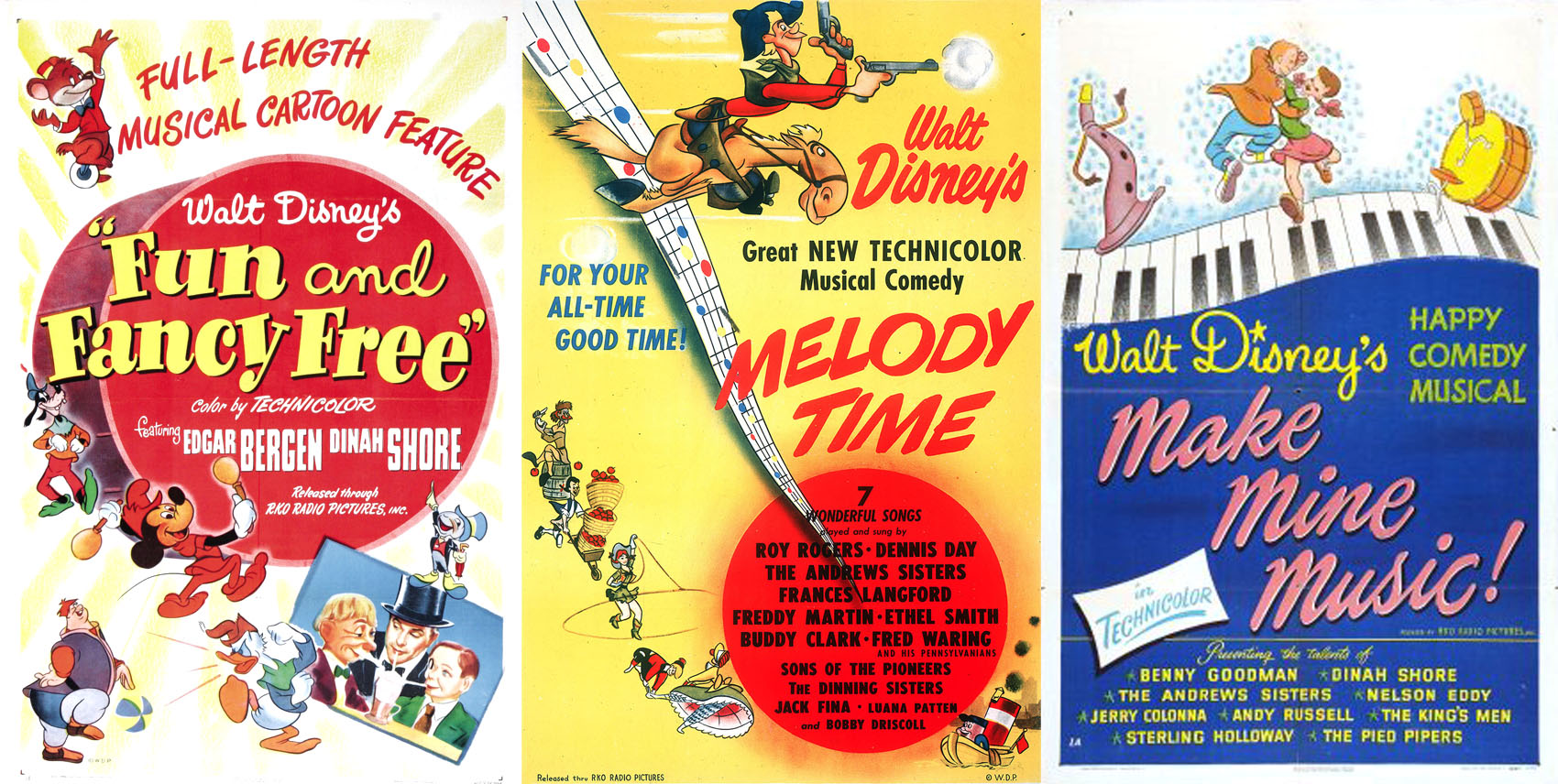 A good place to start is to look at how the studio was doing before its animated classic Cinderella was released. The Second World War and the failed box-office takings of Pinocchio and Fantasia left Walt’s company $4 million in debt. This required Walt to make his next picture, Dumbo, with a shorter running time and on a much smaller budget. Dumbo was made at half the cost of Snow White, $950,000, and managed to gain $1.6 million at the box-office during its original release. But, unfortunately, a year later the film Bambi made only $1.64 million from a $1.7 million budget. The only way Walt could keep his animation company afloat was by releasing military propaganda for the war and making low-budget ‘package films’, such as Fun and Fancy Free, Melody Time, and Make Mine Music, that included animated shorts mixed in with live-action.