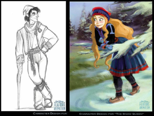 Back in 2013, when we got our first listen at the opening song from Frozen, “Vuelie”, it made me all the more impatient for the film. It brought me back to the drums playing over the Disney logo at the beginning of Pocahontas that got me all giddy and excited watching it on VHS as a kid, and still gives me chills. The song, along with Kristoff’s costume design and this concept art from a much earlier stage in development (below) gave me the impression that it would be a film largely centered on Norwegian culture.