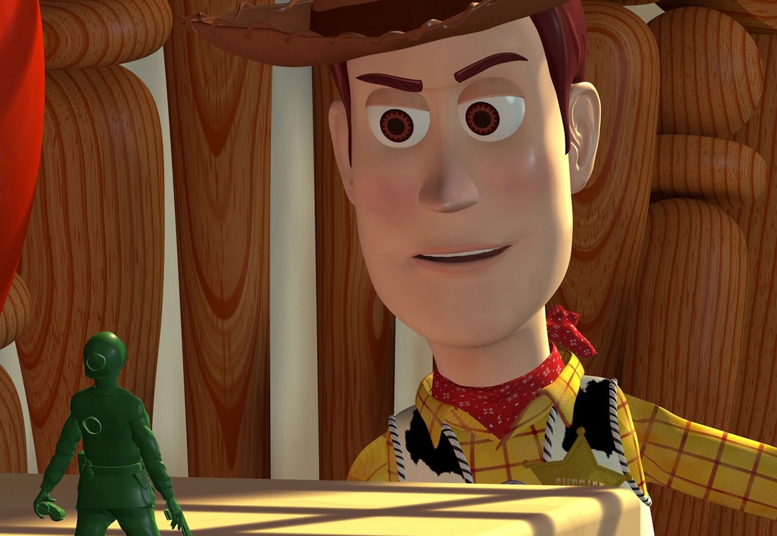 The central relationship of the movie is between Woody and Buzz. It’s a very complex one, given Woody’s jealousy. And his feelings toward Buzz are something we can all relate to. A five-year-old can see himself as Woody and his new baby sibling as Buzz. An adult can perhaps think of a time when a close friend started dating someone and forgot about them. That fear of being replaced or abandoned is universal and makes everything in Toy Story work really well.