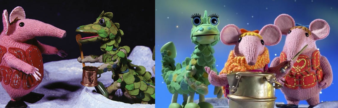The Clangers with the Soup Dragon from the original show (left) and the reboot (right).