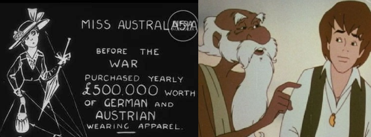 Stills from Harry Julius’ cartoon from 1915 (left) and Eric Porter’s feature film ‘Marco Polo Junior’ from 1972 (right).