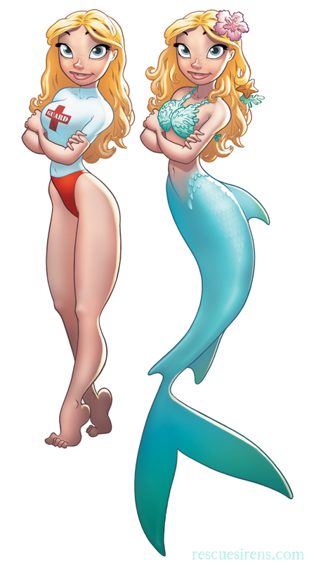 Steele-Sanders (below) describes on the official website Chris Sanders Art how she came-up with the idea: “People say to write what you know. I know water. Before I moved to California, my jobs in Florida had almost always revolved around getting wet: I helped care for and train dolphins, went diving with sharks for a living, taught marine conservation programs, and spent a summer working as a lifeguard. I got to wondering… what if mermaids worked as lifeguards? Well, then, you’d call them “Rescue Sirens”!