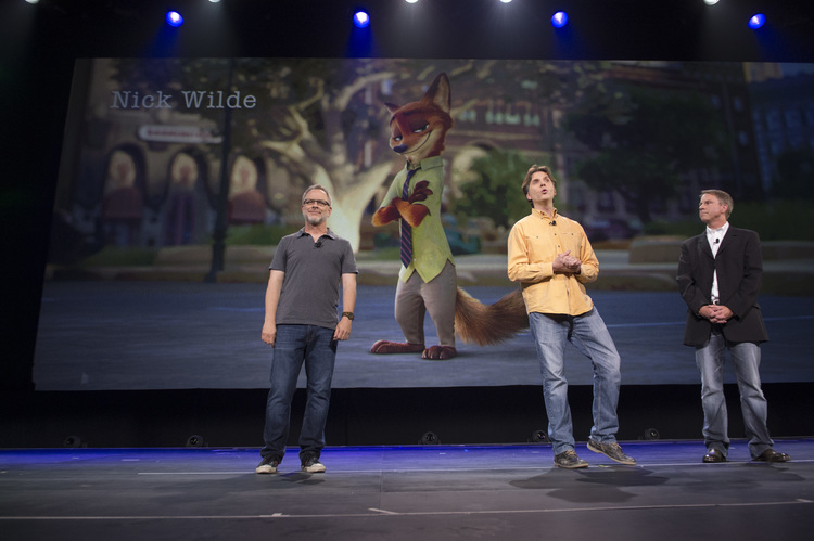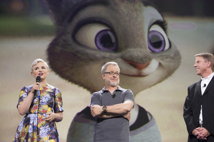 Ginnifer Goodwin (Once Upon a Time) talks about her character in Zootopia, Judy Hopps.The film’s directors and producer discuss animals.Directors Rich Moore and Byron Howard and producer Clark Spencer preview some of the Zootopia animals.Directors Rich Moore and Byron Howard preview some test animation of a dancing tiger.Directors Rich Moore and Byron Howard and producer Clark Spencer preview some Zootopia concept art.The film’s directors and producer show off Tundra Town.Zootopia’s Bunny Burrow concept art.Jason Bateman’s character, Nick Wilde.Zootopia neighborhood posters.
