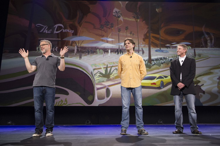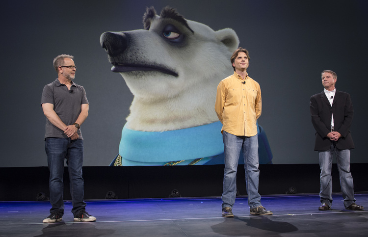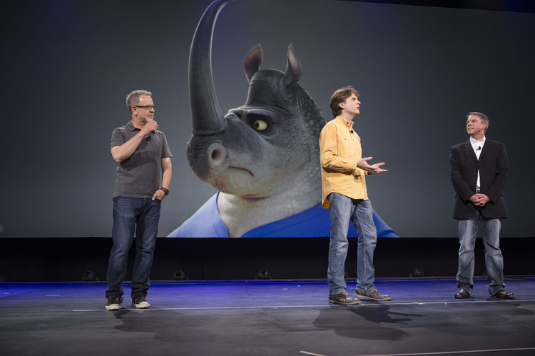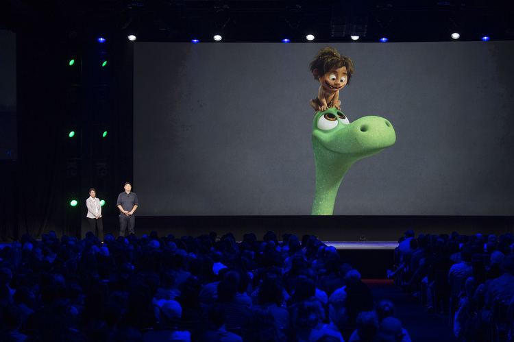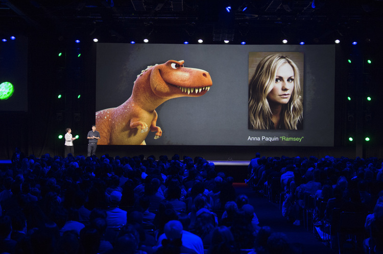 John Lasseter presents director Peter Sohn and producer Denise Ream.Spot animation test.A.J. Buckley’s T-Rex, Nash.Anna Paquin’s T-Rex, Ramsey.