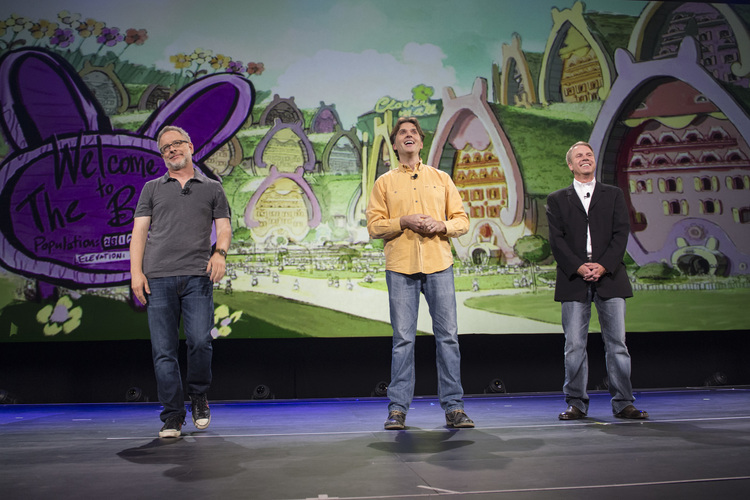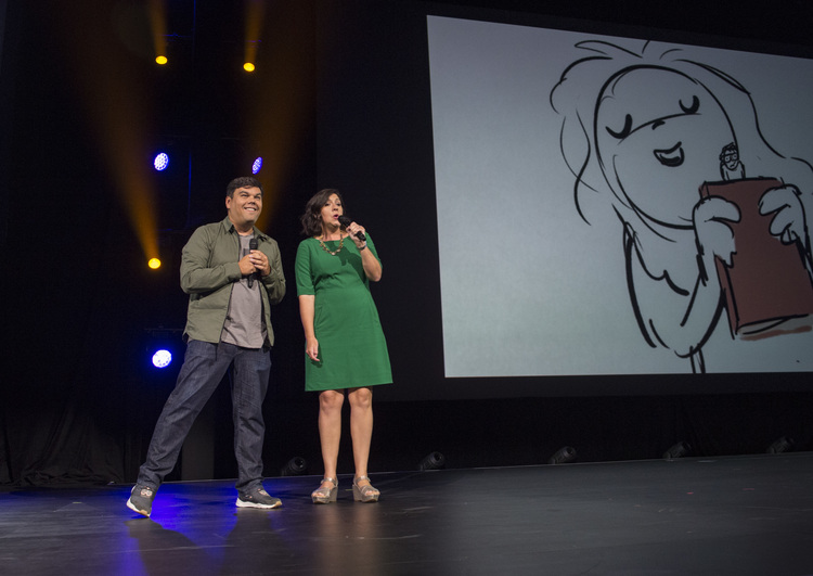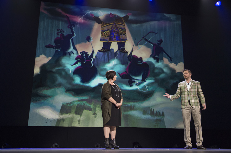 Robert Lopez and Kristen Anderson-Lopez perform a song from the movie.Creative team behind Gigantic: Robert Lopez, Dorothy McKim, Kristen Anderson-Lopez, and Nathan Greno.