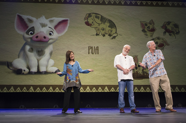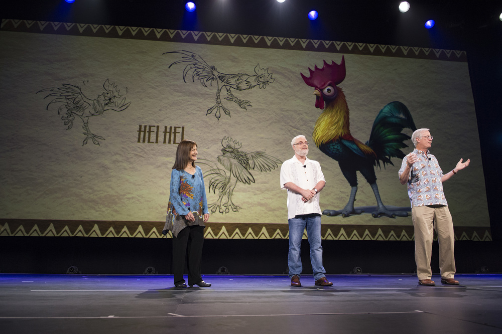 Moana character designs and final render.Directors Ron Clements and John Musker discuss the film.Tui character designs and final render.Sketch of Moana and her grandmother.Sketch of Maui.Designs and final render of Moana’s pig, Pua.Character designs and final render of Hei Hei.