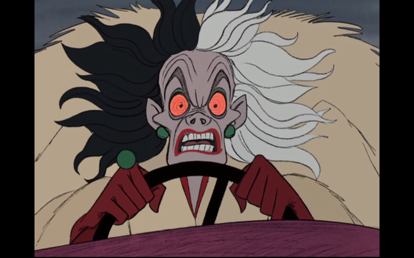 I mean, who would want to skin ninety-nine puppies to make a coat?! Yet when it comes to Cruella, it feels so natural. Of course that’d be her plan. Of course her car looks evil. Of course she’s a maniac when she drives.