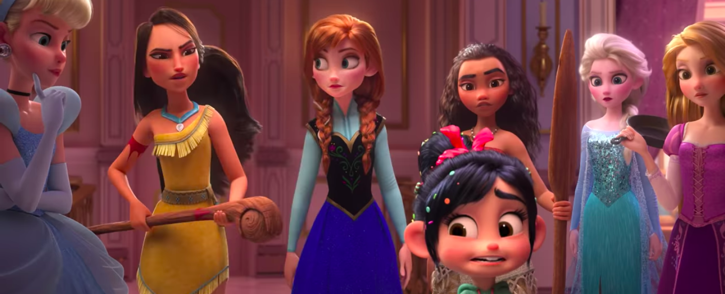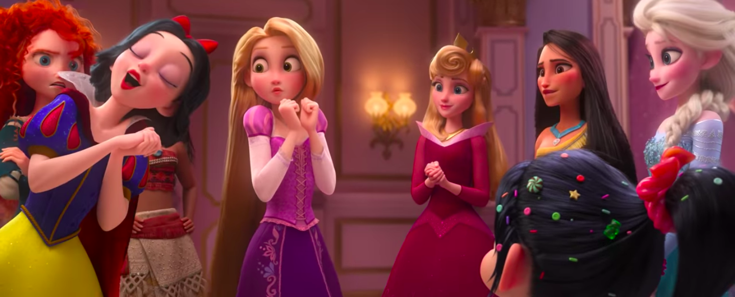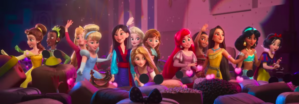 And of course, there’s that much-talked-about Disney Princess scene that everyone’s been waiting for. Snow White, Cinderella, Aurora, Ariel, Belle, Jasmine, Pocahontas, Mulan, Tiana, Rapunzel, Merida, Anna, Elsa, and Moana are all present, as are a few of their friends.