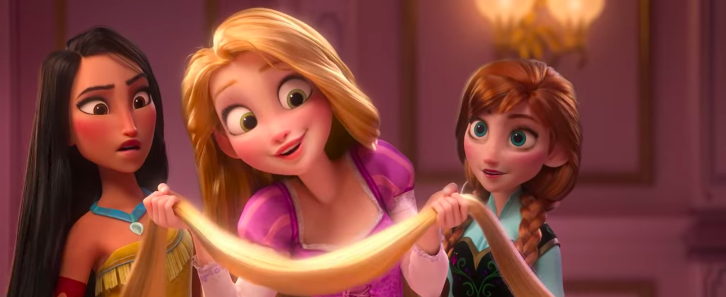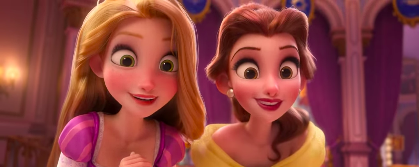 Even though this marks the first time several of the princesses have appeared as fully-rendered computer-animated characters, the animation design of the princesses doesn’t exactly match the model of their original looks, even for those whose original form was CGI. For example, Anna’s face has a notably more square look and Rapunzel looks a bit more childlike.