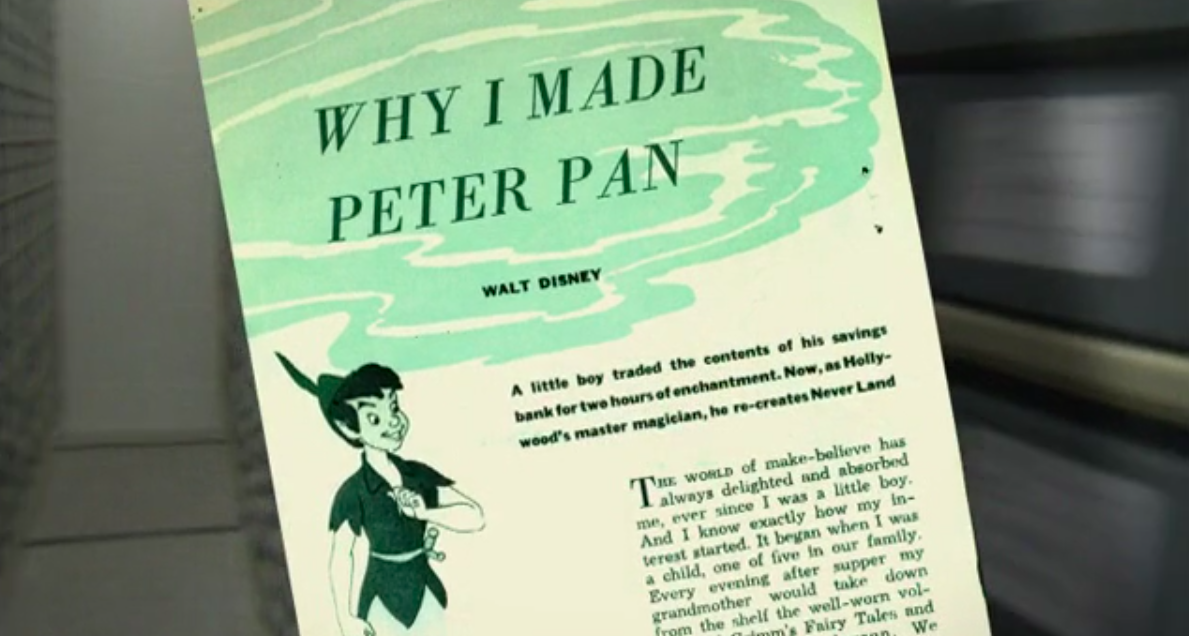 “In Walt’s Words: Why I Made Peter Pan“ narrates prose written by Walt from a 1953 magazine article and pairs it with dramatic live-action recreations from Walt’s youth about why the story is important to him. It’s quick, but enlightening and well-done.